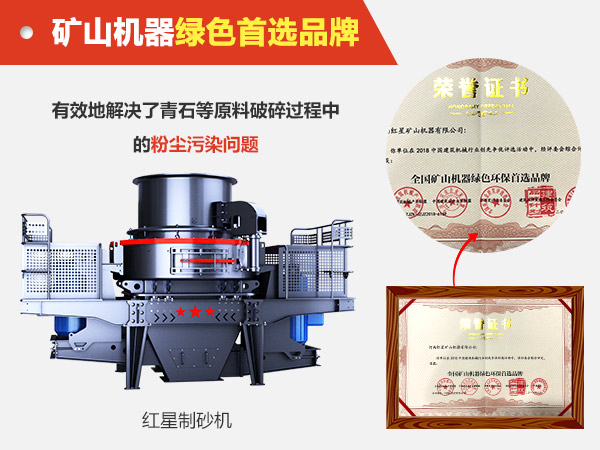 說到環保,紅星機器廠家有話說,這是一家專門從事砂石設備生產的廠家,在研發、生產設備方面,從不固步自封,不斷汲取國外創新制砂技術,總結國內傳統經驗,堅持研發和生產效能高、節能、環保的制砂機。至今已經延伸出多種型號,除了以自身品牌命名的“HX”系列,同時還包括有“VSI系列”和“HVI系列”等。