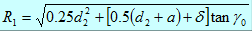 在設計錐襯套之前,進動角r0、主軸尺寸d1,d2、偏心軸套上平面到懸掛點O的距離H、直徑和高度D、H均為已知。根據(jù)下圖1所示的幾何關系可求得O點到錐襯套上口間隙處擺動半徑R1值和R2值: